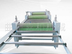 山东曲阜嘉和机械有限公司生产的贴面机具有在板物表面进行水溶性胶水涂布、装饰纸上进行涂溶剂型胶两套涂布装置。