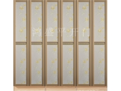 此衣柜门为六扇门子,衣柜门框架为铝合金框架,框架内为艺术板,每扇门子有四个铰链孔。