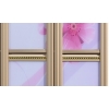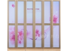 衣柜门框架为铝合金框架,框架内正面为玻璃内有花色,背面为4MM高密度板贴三聚氰胺板,每扇门子有四个铰链孔,更加牢固。