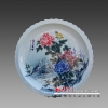 景德镇陶瓷厂家生产供应陶瓷大瓷盘,开业礼品陶瓷大瓷盘,乔迁礼品陶瓷大瓷盘,商务礼品陶瓷大瓷盘,手绘青花陶瓷大瓷盘,手绘粉彩陶瓷大瓷盘,装饰品陶瓷大瓷盘,景德镇高档陶瓷大瓷盘、赏盘、看盘、摆盘、挂盘。景德镇陶瓷瓷厂生产的陶瓷大瓷盘适用于商务办公场合、酒店大堂装饰、酒店餐厅巨型器皿、大堂隔间屏风、工地竣工纪念、名人肖像馆纪念等。景德镇大瓷盘常规规格在1米-1.5米,画面有虫鱼鸟兽,梅兰竹菊,莲花,植物,楼阁,牡丹,龙纹,庭院国画等。由于大瓷盘直径太大,通过模具制作是根本不可行的。因此制作这款陶瓷大瓷盘从泥胚的制作开始都是人工手工拉坯、修坯,待泥坯干燥后,用特殊的陶瓷颜料将精选的画面手绘到瓷盘上面。大瓷盘的烧制是经过1300摄制度的高温烧制而成,这一特性是的我们的陶瓷大瓷盘画面可永久保存、永不退染色。