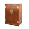 ,柜身为四面平式,通体攒框于柜面嵌落平整统一,制作工艺极为精准,通体无雕饰,干净利落,却增妩媚,柜内有屉板一层,将内部空间分割为二,沿袭明代圆角柜的制作风格和工艺,整体显得朴质凝重。