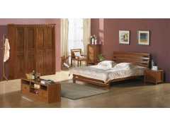 这是华宇竹业“康典”竹家具的卧室系列,包含床、四门衣柜、床头柜、床尾凳。