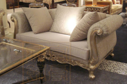 桦木雕花框架,电镀烤漆。内包高回弹海绵,外包韩国进口香槟绒面料,靠背为水晶拉扣工艺