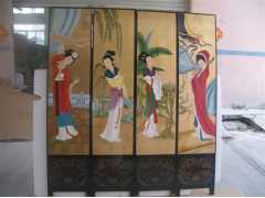 【产品工艺】纯手绘漆画屏风,堆金手法,画面凸出有浮雕效果