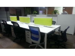2.开放式直行职员组合工作位,6人组一套,单人位标准尺寸1200*600*760,钢木结构,E1级板材,时尚桌上屏风,网布装饰,经典进口暖白色,9成新以上
