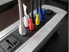 桌面插座通常在多功能会议桌、大班台、办公桌、洽谈桌、商务汽车改造等常见桌面接线设备。集电源输出、互联网连接、笔记本音视频(高清HDMI)接入会议系统、连接电话机、连接话筒终端、USB接口于一体的多功能集成线盒(弹起式、掀盖式、翻转式(电动和手动)。又称多功能桌面集成线盒、多媒体桌面插座、办公台走线盒、多功能桌面插座、会议桌插座等。