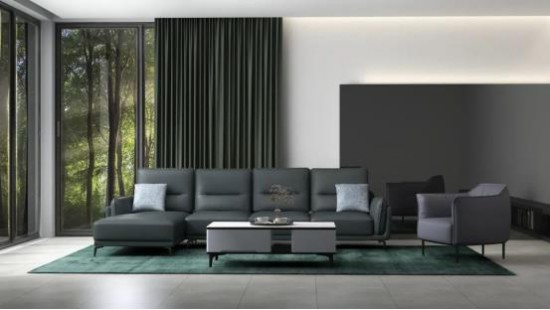 CBD家居·雪豹 | X080沙发,深灰蓝与湖蓝色属于相似色,两种色调彼此呼应,空间氛围很和谐,也呈现出静雅的气韵~