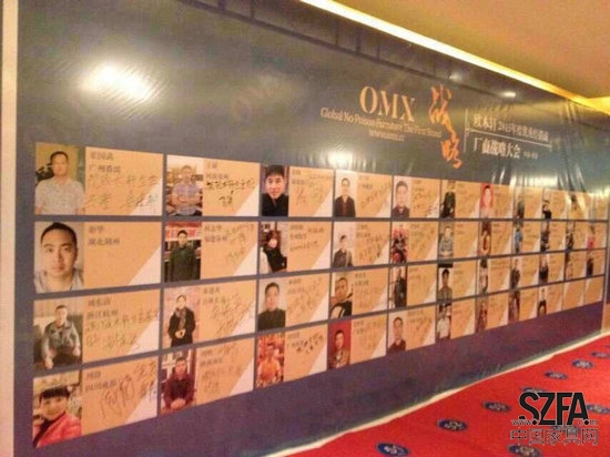 走进会场一幅硕大的展板图进入了眼帘,43个优秀经销商图像与欧木轩携手符凯共谋企业发展战略,3000万助推2015终端赢销主题引起了我们更深探索的兴趣!