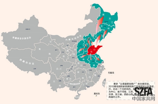 秉承“让渠道更加宽广”的办展宗旨,2015青岛国际家具展招商工作继续如火如荼进行,在近一个月时间内,展会招商团队以山东为中心,南下河南、江苏、安徽,北上河北、京津、东三省,西赴山西,完成了第二轮十省市的招商邀约工作。