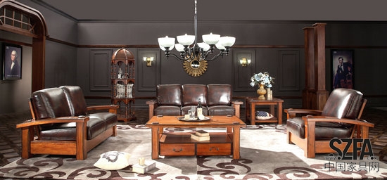 深褐色的真皮、简约现代的设计,让这套沙发充满了很强的时代感,也正如全球金融中心华尔街的领袖气质。