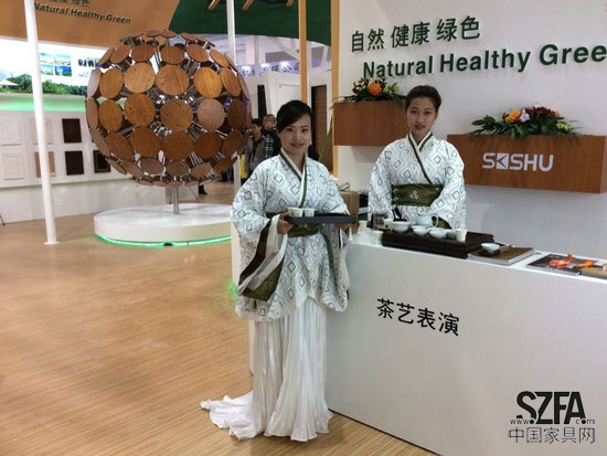 为使观众憩息解乏,三棵树还专门设置了茶艺展台,绰绰翩翩的茶艺师,在为观众递上一杯清茶的同时,也把三棵树人平和清净、顺意天成、道法自然的精神传达给了观众。有茶的地方就有家,有家的地方就有三棵树,心灵的栖息、诗意的居住,三棵树的涵义远不止于产品本身……