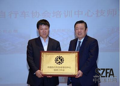 会上对晨阳水漆进行“中国自行车技师工作站”资质授牌