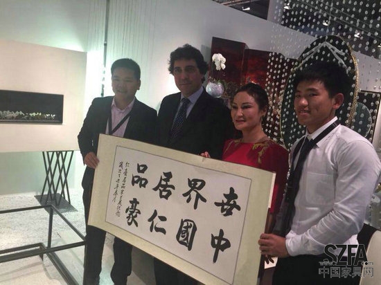会上,仁豪居品除了介绍“旅行”概念产品外,并详细介绍自己的发展历史,自己的家具研发和生产销售状况,阐述未来的发展道路。展会期间仁豪集团赠予意大利设计师团队一副极具东方代表性文化的精美字画——“世界居品、中国仁豪”,字画不仅宣传了东方文化的中庸古典,还诠释了仁豪集团在公司文化与创新产品的结合上,是符合世界家具大潮流的。
