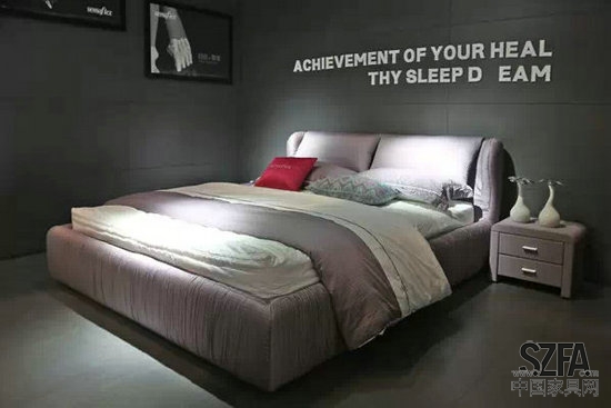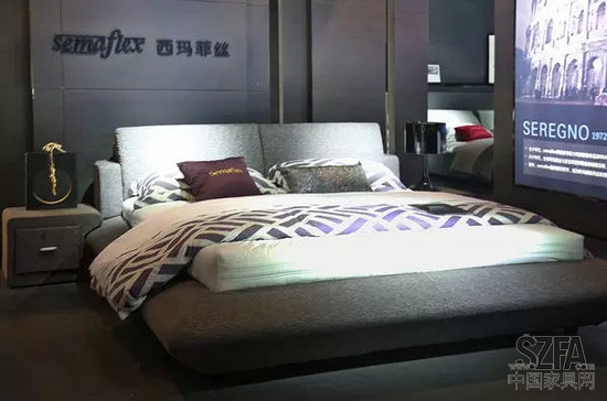 深圳市西玛菲丝家居有限公司品牌总监兼大区总监李德峰介绍道本次参展产品为全新系列,在各方面都进行了一轮提升。为了迎合中国消费者的需求,新系列换成全实木床体,由意大利设计师原版设计,在国内实现生产,无论从面料还是材质都有很大升级,自推出市场后反响很好。