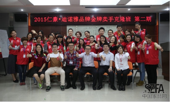 仁豪·迪诺雅克隆班,暨金牌卖手二期课程,为仁豪集团下属市场中心销售培训部策划组织的,加盟商及自营体系一线销售团队新人培训课程。本系列课程,理论与实操相结合,并运用半军事化管理模式,统一安排食宿及其它行程。另外,邀约仁豪集团市场中心总监周复湘先生,仁豪·迪诺雅营销总监张君先生为客座老师,讲解了销售流程及技巧的相关专题课程。