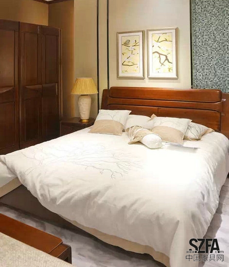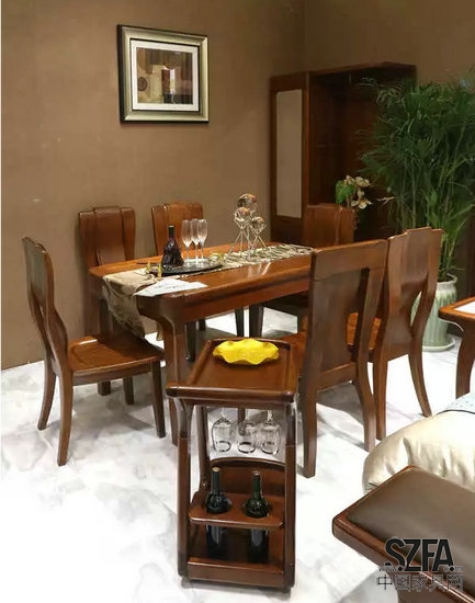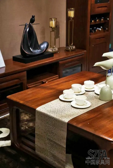 山东忠海家具有限公司业务经理刘超向记者介绍道本次展会展出的鲁匠工坊采用黄金胡桃,设计上一改以往实木家具臃肿沉重的外形,采用简单的设计元素,将低调奢华的沉稳品质突出。每一件家具造型线条流畅,在触碰中感受实木的天然灵性,符合人体工学的考量让实木家具实现人体最高舒适度。