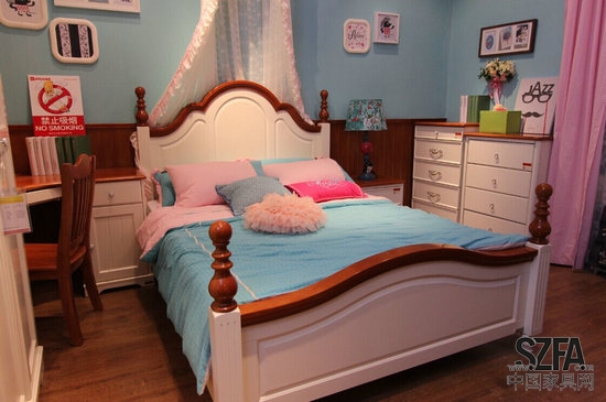 在本届展会上,金富雅的展位位于名家具3号馆的A11-13。约500㎡的展厅大方又不缺精致气质,明亮的灯光下,白色窗户外沿的小雨棚别致而独特。新推出的三大实木品牌系“木槿之恋·格林”、“快乐驿站·莱米” 及“梦幻年华•波顿”。为了打造青少年家具的高端质感,金富雅选用了美国进口黄杨木作为莱米系列的主材。黄杨木摒弃了传统实木的粗重感,美式田园的简洁与质朴呼之欲出。波顿系列则采用双拼混搭的大胆用色,顶级欧洲红榉木、新西兰松在儿童家具中实现了坚固实用的功能。作为青少年家具的领头羊,金富雅赋予了行业更崭新的面貌。