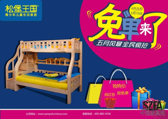 发福利啦!近日,笔者从业内获悉,在五一劳动节来临之际,国内知名儿童家具品牌松堡王国五月优惠飓风席卷全国,重磅推出“免单来了!全民疯抢”大型优惠活动,真金白银回馈消费者,届时将为全国消费者奉献一场钜惠饕餮盛宴,优惠力度堪称空前。