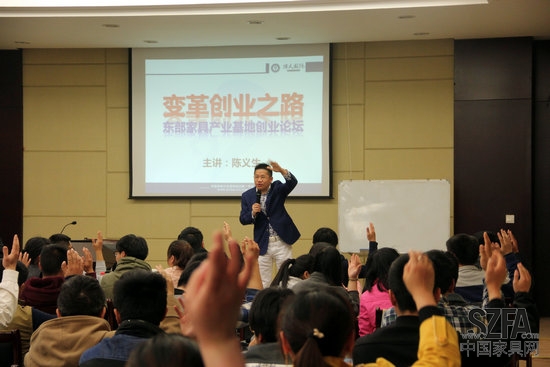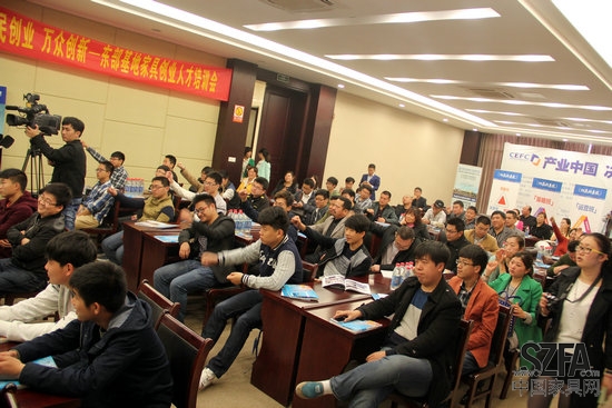 4月25日,“全民创业、万众创新—东部基地人才培训会”在东部基地隆重召开,近百名意向创业者主动前来参加活动。东部家具产业学院高级导师、著名营销专家陈义生就家具行业发展与前景、卖场导购、创业初期遇到的问题及解决方法等方面进行了讲解剖析。陈老师深入浅出、形象、风趣的讲座让原本单调的培训课变得生动有趣,使大家对创业充满了激情和信心。