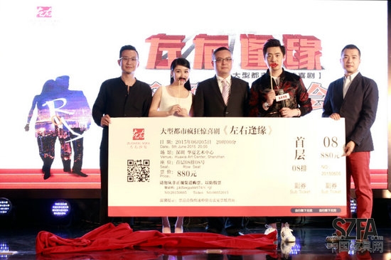 2015年4月28日,左右沙发定制舞台剧《左右逢缘》在北京举行发布会暨开票仪式,主创团队可谓明星阵容,不仅请到了《开心麻花》系列舞台剧御用编剧、导演关旭坐镇,湖南卫视当红节目《我们都爱笑》的主力笑星肖旭、古筝也将担纲男女主角。该剧目被定性为“大型都市疯狂惊喜剧”,在发布会上更是随处可见“剧透”关键词:魔幻穿越、读心神怪、都市情感、家庭伦理、青春、励志……无疑吊足胃口,到底将是什么样的好戏将登上舞台?