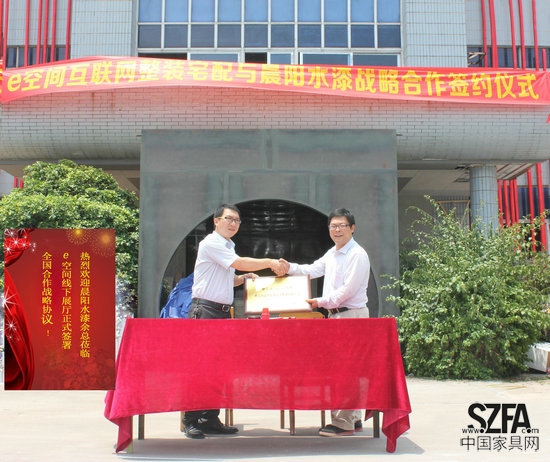 4月27日,晨阳水漆与中国首家互联网整装宅配O2O直营平台---东莞市爱易空间家居科技有限公司(以下简称“e”空间)在“e空间”超2000平米线下科技体验馆正式签署全国战略合作协议,晨阳水漆华南大区经理余俊文与东莞市爱易空间家居科技有限公司首席执行官查晓翔出席签约仪式。