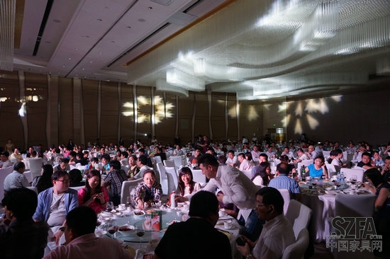 为了对支持展会的经销商及企业表示感谢,主办方在梅江中心皇冠假日酒店举办参展商答谢晚宴款待来宾。在晚宴现场,中国家具行业协会理事长朱长岭上台致辞,对天津展主办方为展会以及对行业促进发展的努力表示祝贺和肯定,也期望在京津翼的协同合作下,天津展以及天津家具企业取得更好的发展。天津家具协会秘书长高秀芝上台代表展会主办方发表致谢感言,对展会首日情况进行总结,今日客流量比去年同日增加三分之一,现场的展会形象也比去年有所提升,未来会朝着更好的方向发展。