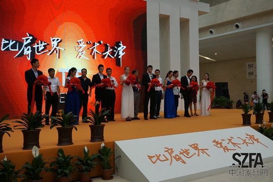 展会开幕式在登录大厅中心舞台举行,中国家具协会以及各地方家具协会领导出席开幕式。同时开启天津市首届家具设计大赛启动仪式,据天津职业技术师范大学艺术学院魏长增介绍,这是一个旨在促进行业创新力,为企业与大学搭建人才输送桥梁的活动。最后各协会领导上台剪彩并巡视展馆,为本次展会正式启幕。