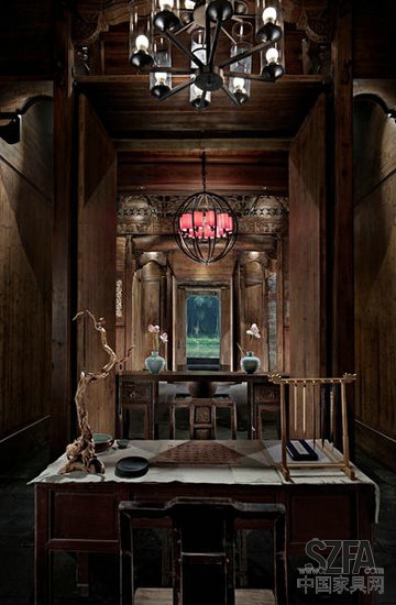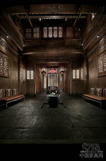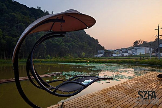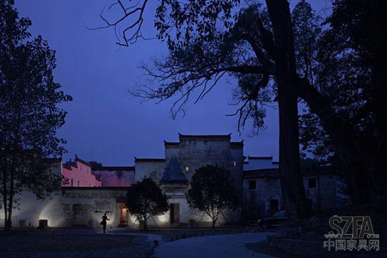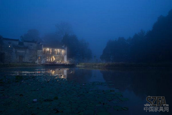 家具则大部分根据当地徽州家具款式做了简化设计,上色则从法国新古典家具中吸收灵感,上了三种不同灰色。同时为了让建筑与乡村生活融为一体,老宅前开挖了一处水塘,将原本完全幽闭的徽州民居改造成一个远山、近水、休闲平台、咖啡厅、祠堂内外交融相互呼应的休闲空间,古典美与现代美和谐共生,完美的展现在人们面前。