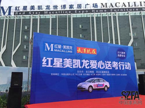 武汉红星美凯龙联手《武汉晚报》、华昌出租车公司发起“爱心送考”大型公益活动已持续一周。6月5日,“爱心送考,与家同行”启动仪式于武汉红星美凯龙中部家居直销基地(额头湾商场)盛大举行。武汉晚报广告中心副总经理黄峰、华昌出租汽车公司副总经理杨红、长江网副总编辑龚平,红星美凯龙武汉区域总经理兼额头湾商场总经理陈金梅、武汉区域副总经理兼额头湾商场副总经理谭浩军、红星美凯龙竹叶山商场总经理刘泽敏等多位领导出席了此次活动。此次活动也得到了众多媒体的支持和帮助,包括长江日报、武汉晨报以及大楚网、搜狐网、亿房网等网络媒体的大力支持。