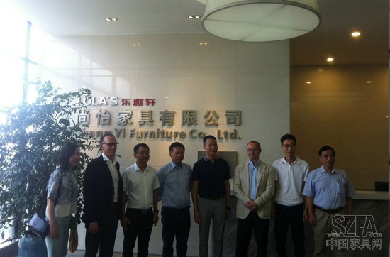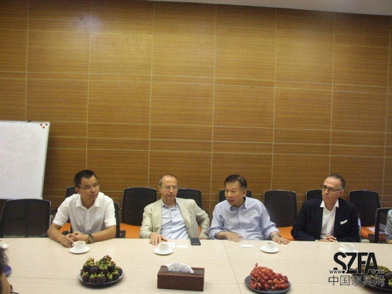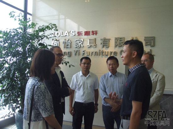 乐雅轩艺术家具董事长左本勤先生、常务总经理曾伟强先生亲迎接待。在会议室里,左本勤董事长首先对来访嘉宾与领导表示热烈的欢迎,详细地介绍了乐雅轩今年良好的发展势头,以及未来的发展规划。随后与黄勇基副镇长、李德志教授,以及Alberto与Glanmaria Dolfo先生亲切地交流了关于家具产业升级、新材料运用、家具环保等话题,并初步达成了与意大利ITALYIIC公司的合作意向。