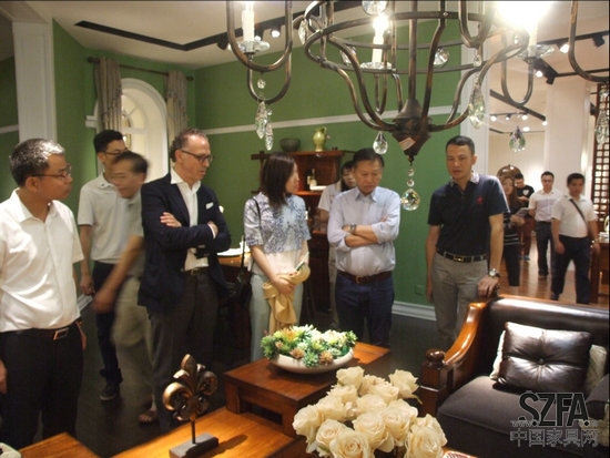 随后,左本勤董事长携众嘉宾与领导参观了乐雅轩展厅。在具有浓郁艺术氛围的家具展厅里,作为香港设计界的泰斗,香港理工大学设计学院副院长的李德志教授,以及2位意大利友人对“加州庄园”的美轮美奂、“雅茗”的雍容华贵,以及“乐府”的中西合璧赞不绝口,更对乐雅轩坚守原创、艺术造家的发展理念所深深折服。