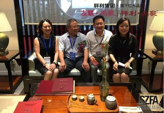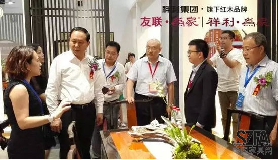 昨日,祥利集团应邀出席“投融会”,并迎来中小企业协会常务副会长张竞强、中国中小企业协会副秘书长马彬、和君集团总裁/和君资本董事长刘纪恒、中国德和精品律所联盟(ECLA)执行主席蒋琪等商界精英。中小企业协会常务副会长张竞强一行在参观、欣赏祥利集团展馆及新品“乾元”后,纷纷表示祥利集团红木家具设计造型独特,工艺精湛,红木文化底蕴深厚,不愧为红木家具行业首屈一指的企业。