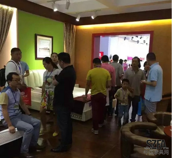 展馆现场的火爆程度只能用两个字来形容,爆满!你看,床上都坐满人了。