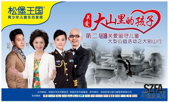 松堡王国儿童家具,作为国内儿童家具领导品牌,始终坚持“爱”企业的文化,以为“孩子打造健康环保成长空间”为企业使命,2014年协助中国文学艺术基金会在全国举办了第一届关爱留守活动,组织了全国200组家庭及众多演艺界爱心人士组成“爱心天使团”,前往湘西慰问当地留守儿童,今年,松堡王国将“爱”延续……旨在呼吁更多的社会人士加入我们,关注留守儿童,让“爱”守护留守儿童的成长。如果您也想为留守付出一份爱心,请来加入我们吧!