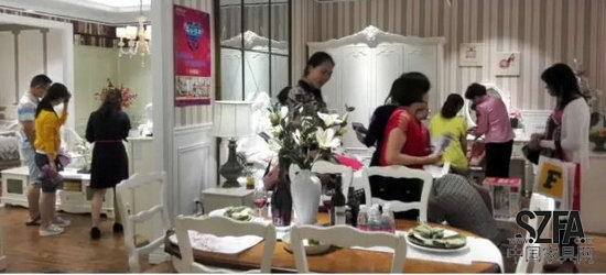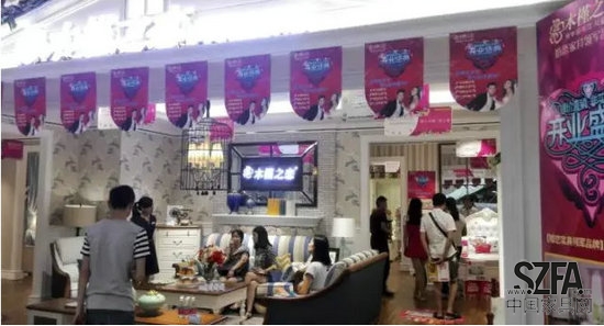位于富森美家居檀木厅三楼电梯口的木槿之恋,是婚恋家具领军品牌。木槿之恋产品集欧美家具设计风格之精华,以象征高贵的象牙白颜色为韵,以时尚典雅的线条和精细别致的实木雕花为魂,通过现代艺术风格和新古典设计风格的完美融合,为都市白领送上温馨浪漫的生活体验,爱上木槿、恋上家。木槿之恋专卖店开业期间场面火爆、人气旺盛、业绩喜人。