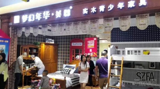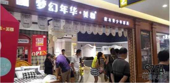 位于富森美家居二楼儿童区的梦幻年华·美郡,是高端青少年儿童家具品牌,全部采用美国进口白蜡木打造而成。经典的美式设计元素,流畅优雅的线条,地中海式的拱形床屏,白腊木的天然纹理,轻做旧的涂装工艺,双色混搭,浑然一体,自然温馨感扑面而来,演绎美式地中海纯美自然的优雅风情。成为成都高端青少年家具消费风向标,是儿童区的一道亮丽风景,开业期间业绩傲人。