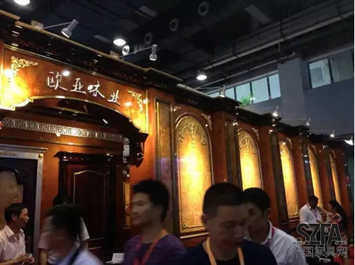 欧亚木业位于11.1号馆06A展位,虽不知为何置身于木工机械展区,其奢华而古典风格的展位,更显“沧海遗珠”之感,吸引了无数设计师、经销商和家具爱好者的目光。