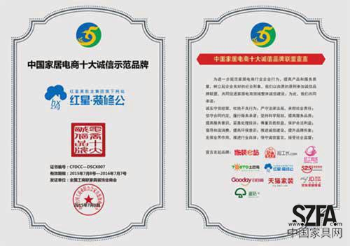 2015年7月8日,红星美凯龙集团旗下互联网装修平台——红星装修公在第二届中国家居电商与诚信建设大会暨中国互联网家装与泛家居论坛中再露锋芒,荣膺“中国家居电商十大诚信示范品牌”。