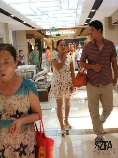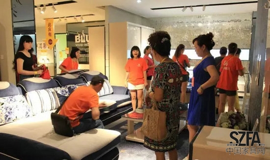 参加工厂团购的客户们分批次抵达阳光林森总部。在工作人员的带领下,按顺序进入展厅参观选购。
