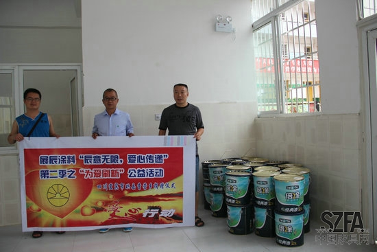 2015年展辰涂料公益行动已再度起航,组织了主题为“为爱刷新,放飞梦想”的公益活动,为四川省宜宾市珙县曹营乡三所小学和山东省菏泽市东明县焦元乡闫潭村闫潭小学刷新教室墙面,让同学们有一个好的学习环境。此外还组织了员工无偿献血和关爱环卫工人,为环卫工人捐款等社会公益活动。