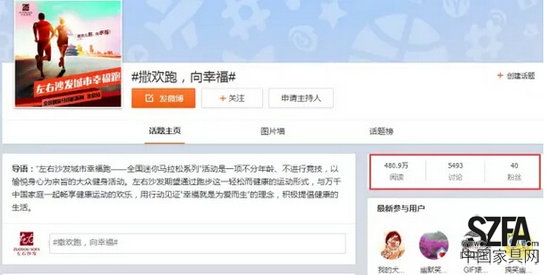 对城市的自豪与爱,大多是生活于斯的城市人绕不开的情绪,也是品牌最能撩动的情感共振点。事情也正如所料,左右沙发幸福跑在北京开跑以来,通过微信、微博、网络媒体、平面媒体的传播,影响力急剧提升,到广州站时,已经得到沃尔沃汽车S80L顶配的赞助支持。根据统计,仅北京“撒欢跑,向幸福”这一话题就一度冲进了新浪微博话题风云榜前10位,阅读数达到480.9万,相关信息吸引了5423次朋友圈转发。在成都发布的微信送达人数更是达到1238977人次,图文页阅读达61153人次。