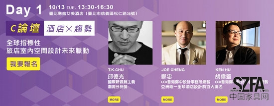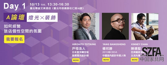 2015年CBDA中国室内设计年度人物杨邦胜,近期以三亚海棠湾9号渡假酒店荣获多项国际奖项。日本东京晴空塔灯光设计师户恒浩人,参与了多项日本国内的主要灯光设计照明案,其独树一格的照明设计闻名于同行。并于2013年受邀到香港最高的环球贸易广场(ICC)外牆展演最大的灯光音乐表演。将首度同台与饭店设计趋势专家担任主讲人,提供前瞻性的创意设计概念以及未来的酒店室内设计趋势,并促进设计师与国际交流的合作。将吸引国内外产、官、学、建筑设计等相关专业人士,前来参与此盛会,预计与会参与论坛之设计领域人士将超过三千人以上,盛况可期。