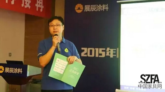 次日,展辰涂料集团家营中心品牌总监蒋健向大家汇报了2015年度展辰品牌推广情况和未来计划。