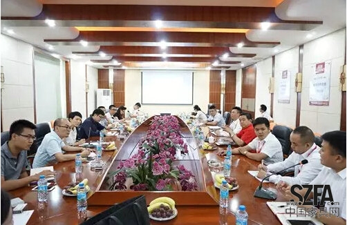 8月31日,为加强地产与家具行业交流,由深圳家协常务副会长关永康带队,邀请万科广深区域本部副总建筑师逯薇及珠海万科公司一行,参观深圳仁豪集团与七彩人生家具,仁豪集团董事长尤国忠、七彩人生家具总裁黄锦彬及公司高管热情接待了万科一行,双方就关心的问题及合作事宜进行深入交流,为地产与家具产业链纵向一体化合作树立了典范。