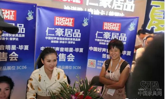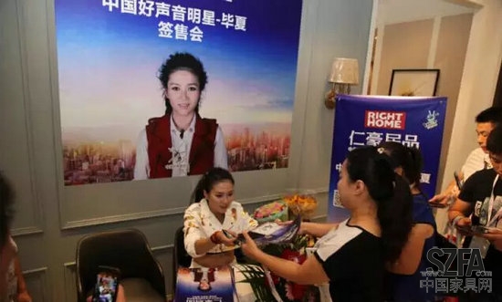 除此之外,好声音人气歌手毕夏莅临仁豪居品展厅举行现场签售会,限量版CD独家签名发送,更是引来不少参观者在仁豪居品展位前聚集,甚至排起了长龙,手拿CD进店参观。好声音人气歌手毕夏的粉丝号召力充分说明了仁豪居品成功的开启了家具娱乐化营销时代,打造出了品牌营销策划的一条崭新之路!