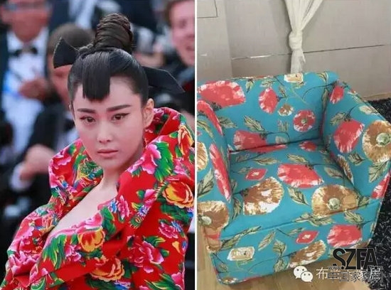 还记得张馨予在今年戛纳开幕式上那一身醉人的花棉袄造型吗?人家可是凭借这个东北大袄风风火火了一把,这不,为了更彰显品牌的国际范儿,布兰卡也将这种流行元素成功运用到了沙发的配色之中!