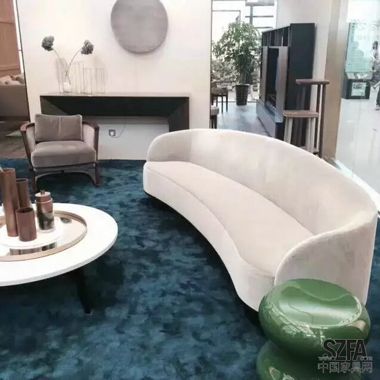 传统的大欧大美产品在上海展上已经隐退,取而代之的是那些简欧、简美、简法的产品,我们称其为“轻古典”产品。一方面在结构样式上保留了经典的造型,但在装饰元素上得到大大的简化,另一方面在颜色上则跳出传统涂装的范式,走向清新多彩,在软包面料上则更加时尚前卫。