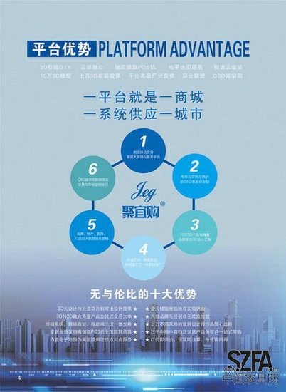 聚宜购是一个以居于云端的3D家装设计软件和线下自助设计和体验为基础的家居O2O产销对接服务平台。它由产品数据中心、软件开发与应用、市场运营管理和品牌整合推广四大平台构成,拥有强大的技术研发力量与终端渠道资源。聚宜购自主开发的核心科技以领先的OSO商业模式,突破了自助终端、商城PC端、移动端三端一体化瓶颈,其3D自助设计和2D完美融合,实现了全品类、全方位、全天候、一站式DIY订制与整体销售,彻底颠覆传统营销和家居电子商务,成为中国家居行业O2O商业模式的引领者。