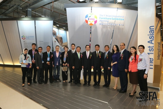 亚洲家具联合会会长、中国家具协会理事长朱长岭先生,亚洲家具联合会秘书长兼中国家具协会信息部主任屠祺女士,好百年集团董事长兼总裁韩茂胜先生,好百年集团副总裁林绍华先生,广西自治区工商联党组成员、副巡视员、秘书长韦克平先生,广西自治区工商业联合会副部长孙浩先生,南宁市工商业联合会党组副书记、副主席邱健先生,中共江南区委常委、政府副区长李长方先生,南宁市江南区人民政府副区长罗琮琳先生,南宁华南城副总经理思有宁女士,亚洲家具联合会顾问Kok Sok Yan女士,亚洲家具联合会顾问Casey Loo先生,伊朗家具装饰业联合会秘书长Mozaffar Alikhani先生,韩国家具业同业公会秘书长James Yang先生,马来西亚家具总会副会长Jamaludin 先生,印度尼西亚家具业和手工业协会副主席Rudy T Luwia先生,泰国家具协会主任Maitri Prasertchang先生,菲律宾家具业公会常务董事Salvio L. Valenzuela, Jr.先生,天津市家具行业协会常务副会长高秀芝女士共同出席了开幕式。