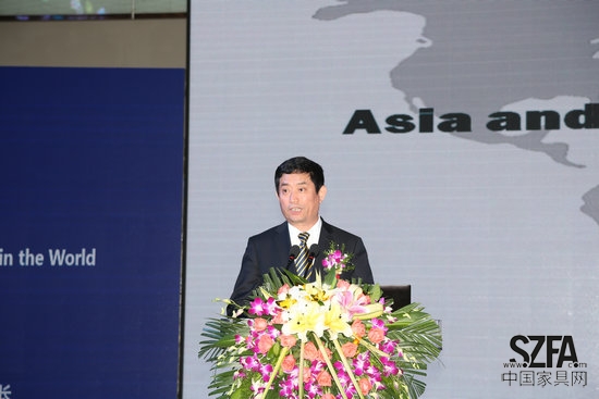 朱长岭理事长就“从全球看亚洲及中国家具的发展”为主题进行了主题演讲。他从全球家具生产和贸易概况、亚洲家具产业发展概况及中国家具行业发展概况三方面进行了详细阐述,最后他指出,随着中国家具业生产能力的不断增强及国际竞争力的不断提高,中国正在从家具生产大国不断向生产强国迈进,中国家具将与世界融为一体,为世界做出更多的贡献。